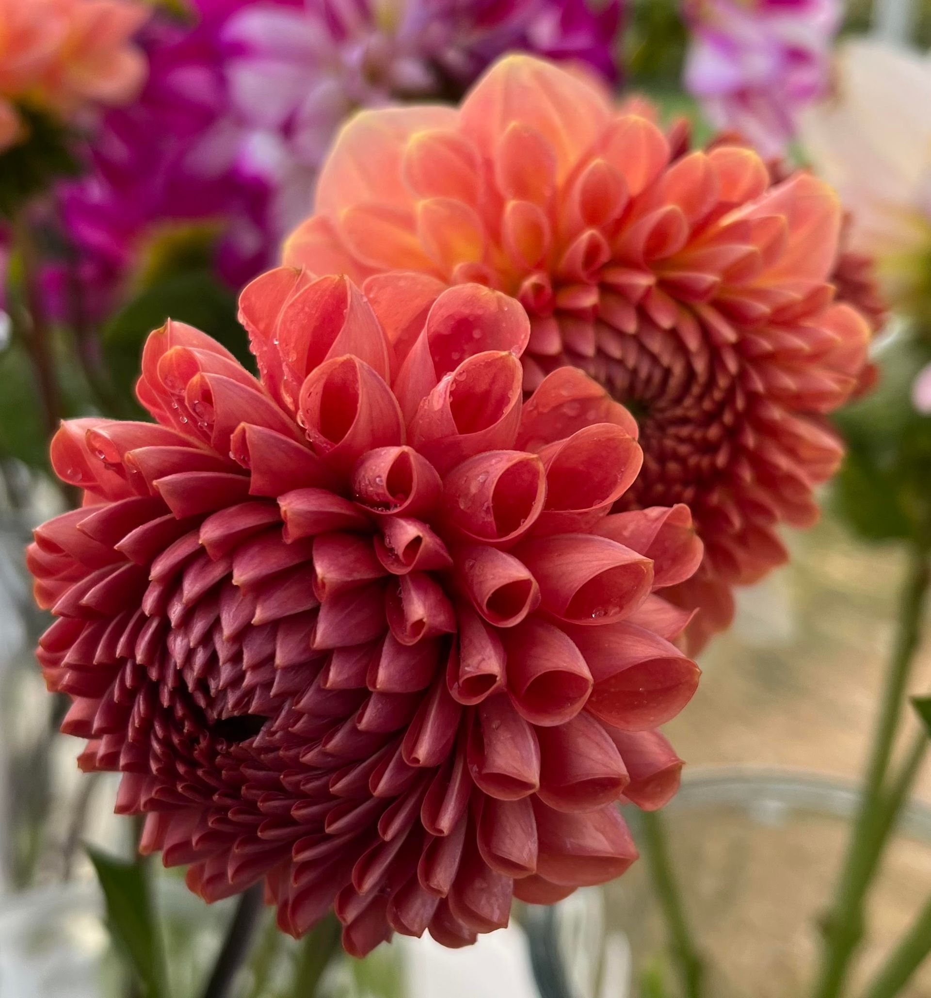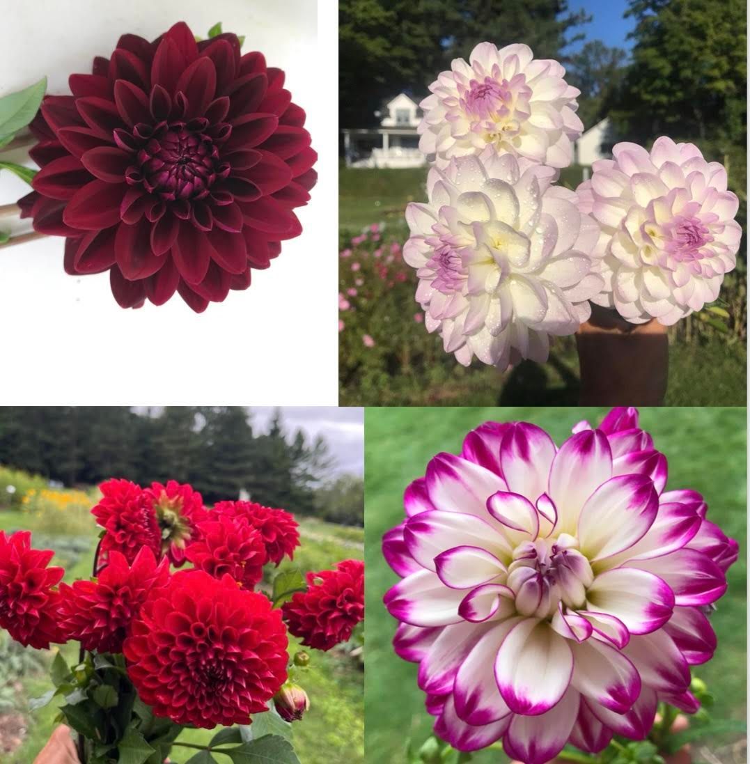 Below are some of the dahlias we grow along with photos and descriptions to give you a better sense of each variety's characteristics. Hover over the photo to learn the name--CLICK ON THE PHOTO to see it bigger and to read a short description and price of that particular tuber. Don't miss the starter pack --a great deal featuring 4 of my faves.